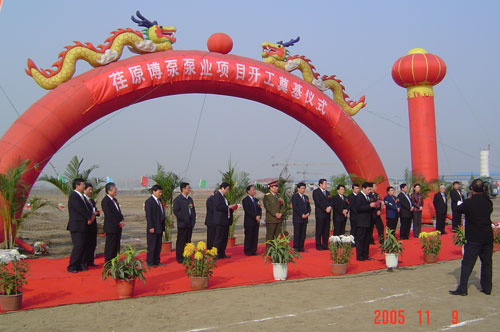 新聞中心 2005年11月9日,荏原博泵有限公司開工奠基儀式在淄博高新技術開發(fā)區(qū)隆重舉行。這標志著荏原博泵泵業(yè)有限公司的建設工作已經(jīng)全面啟動,預示著荏原博泵泵業(yè)有限公司將穩(wěn)健地邁上蓬勃發(fā)展的道路。