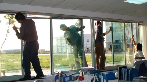 業(yè)務(wù)技術(shù)黨支部共32人參加勞動(dòng),支部書(shū)記梁文運(yùn)與支委們首先對(duì)負(fù)責(zé)清理的二樓、四樓場(chǎng)所及會(huì)議室的窗戶和地面進(jìn)行了詳細(xì)分工,使大家在有限的時(shí)間內(nèi)有條不紊的進(jìn)行。特別是二樓只有13人參加勞動(dòng),衛(wèi)生清理工作量比較大,但大家都沒(méi)有任何怨言。在勞動(dòng)中,鄭素紅、房凝、徐寶紅、牛愛(ài)香四位女同志連續(xù)工作一個(gè)半小時(shí)打掃了二樓的所有辦公室和會(huì)議室的地面。李正民副總和李同華副總率先帶頭擦起了窗戶,在擦完窗戶后大家又把所有的窗臺(tái)和地面的衛(wèi)生死角清理了一遍。