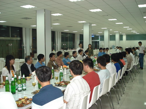 晚宴在輕快的音樂(lè)聲中舉行,總經(jīng)理孫龍平因公務(wù)無(wú)法前來(lái),專門打電話表達(dá)了對(duì)員工的節(jié)日問(wèn)候。公司董事長(zhǎng)井上先生、常務(wù)副總鈴木先生先后致辭,表達(dá)了對(duì)員工節(jié)日的祝賀,同時(shí)談到了八月十五這一天,在日本也有全家人賞月的傳統(tǒng),故鄉(xiāng)的明月是所有游子魂?duì)繅?mèng)繞的情。自助式晚宴進(jìn)行得自由而輕松,員工之間頻頻舉杯,共敘友誼,并無(wú)多愁善感;人力資源部姜部長(zhǎng)帶頭向員工一一祝酒,對(duì)員工的鼓勵(lì)溢于言表,整個(gè)餐廳觥籌交錯(cuò),其樂(lè)融融。