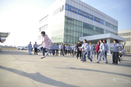在踢毽子比賽現(xiàn)場,只見毽子上下翻飛,隊員們不急不慢,沉著應(yīng)對。在跳繩比賽現(xiàn)場,繩子在隊員手中有節(jié)奏的搖著,每個人和著自己的節(jié)奏,有的跳的輕快、有的越著急越絆腳,周圍看的員工也跟著著急。最吸引人的還是集體項目“跳長繩”,每個隊8名隊員,2人搖繩,其余6名隊員魚貫從跳繩中穿過,然后再從另一邊跳入,隊員們配合默契、身輕如燕 ,觀眾們加油聲此起彼伏,整個現(xiàn)場一片歡樂。最終,獲得踢毽子比賽前三名分別是:牛艷春、鹿子云、焦金玲。獲得跳繩比賽前三名分別是:張洪蘭、王陽、王春;跳長繩比賽的第一名是生產(chǎn)分會。