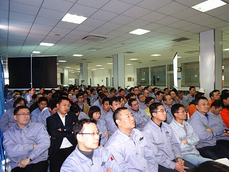 接下來,王總對(duì)公司各系統(tǒng)的工作做了詳細(xì)的分析:營(yíng)業(yè)方面,訂貨結(jié)構(gòu)有所改善。生產(chǎn)方面:發(fā)貨數(shù)量創(chuàng)歷史新高;生產(chǎn)效率提高、費(fèi)用控制也是生產(chǎn)系統(tǒng)的一大亮點(diǎn)。在采購(gòu)工作中,各個(gè)部門的溝通和配合有很大的提高,降低費(fèi)用成效顯著。焊接工場(chǎng)成立一年半來,成長(zhǎng)迅速,超出公司預(yù)期;在焊接噸位、員工技能提高、工藝改善等方面有了很大的發(fā)展。研發(fā)方面:導(dǎo)入PDM管理軟件,出圖質(zhì)量提高,出圖及時(shí)率達(dá)到98%以上,圖紙更改率降低。通過與富津工廠及總部的溝通與支持,各項(xiàng)開發(fā)課題進(jìn)展順利??梢宰院赖恼f:目前我公司中開泵性能的競(jìng)爭(zhēng)力已經(jīng)在國(guó)內(nèi)不輸任何一家競(jìng)爭(zhēng)對(duì)手,為下一步產(chǎn)品拓展打下了基礎(chǔ)。管理系統(tǒng)方面:PDM管理軟件的應(yīng)用,ERP系統(tǒng)升級(jí),公司會(huì)議系統(tǒng)的開發(fā)及各種表單的開發(fā)、電腦的更換,為部門效率的提高打下了基礎(chǔ)。辦公樓的改造、5S管理工作的強(qiáng)化等等使公司辦公面貌煥然一新。通過各方面工作的磨練及內(nèi)外培訓(xùn)工作的加強(qiáng),員工的技能、思維方式、行為方式、解決問題的能力等有了很大程度的提高。