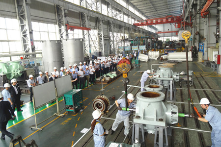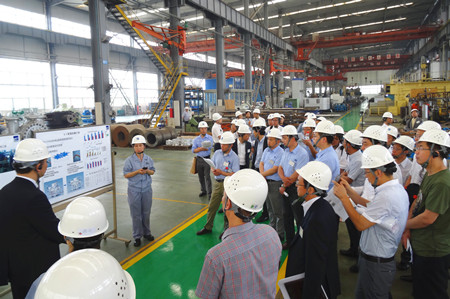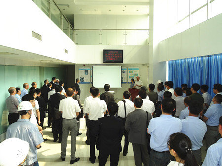 這次生產(chǎn)革新大會的目的是加速推進荏原集團內部各工廠的生產(chǎn)革新活動的開展,目標是生產(chǎn)周期減半、庫存減半、最大限度地提高生產(chǎn)效率,降低成本,增強企業(yè)競爭力。通過生產(chǎn)革新活動,達到從現(xiàn)場改善提升到管理系統(tǒng)改善、人的改善的目標,使“產(chǎn)品制作”流程優(yōu)化。在這次大會上,公司總經(jīng)理王正軍向與會代表介紹了EMZ的經(jīng)營發(fā)展狀況,并帶領與會人員參觀工廠,詳細介紹了生產(chǎn)革新的進展情況。