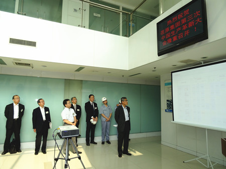 新聞中心2015年5月26日,荏原集團第三次中國生產(chǎn)革新大會在我公司召開。這次大會,由荏原集團在中國包括臺灣的八家海外工廠組成,各公司的主要負責人及技術人員共70余人參加了會議。荏原集團風水利公司領導大井專務取締役、小瀉常務取締役、野路常務取締役、寺垣常務及我公司董事長井上貴雄到會并講話。